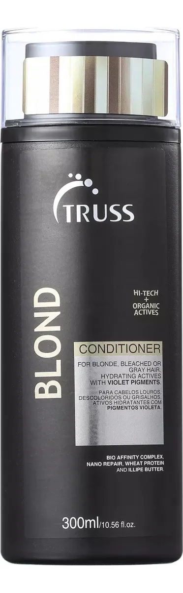 Você acaba de encontrar o condicionador ideal para cuidar de cabelos loiros, grisalhos e descoloridos como eles merecem. O Condicionador TRUSS BLOND cuida do seu tom com seu Blend de Pigmentos Violeta, que neutraliza os tons alaranjados causados pela oxidação do fio com exposição ao sol, uso de fontes de calor e demais agressões do dia a dia.