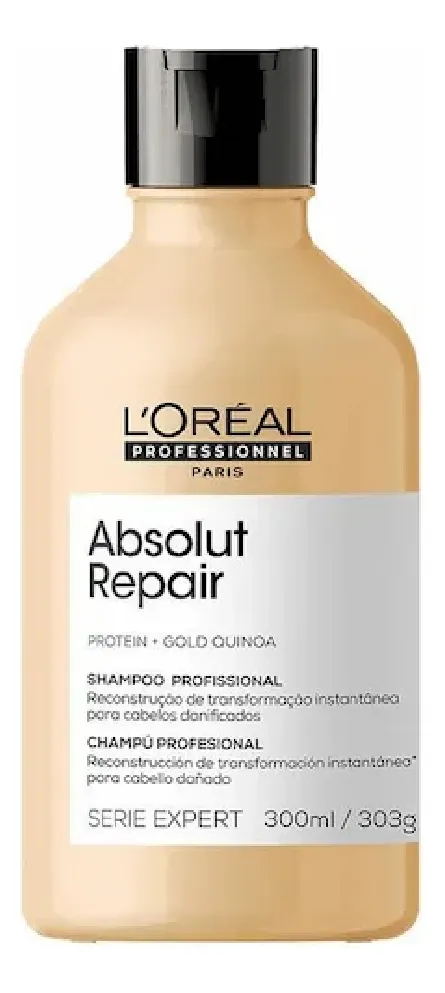 O Shampoo Absolut Repair Gold Quinoa foi desenvolvido especialmente para cabelos danificados, proporcionando uma limpeza suave, reparação intensiva e nutrição profunda desde a primeira aplicação. Sua fórmula inovadora é enriquecida com Quinoa Dourada, um poderoso ativo que ajuda a restaurar a saúde capilar, tornando os fios mais fortes, brilhantes e com movimento natural.