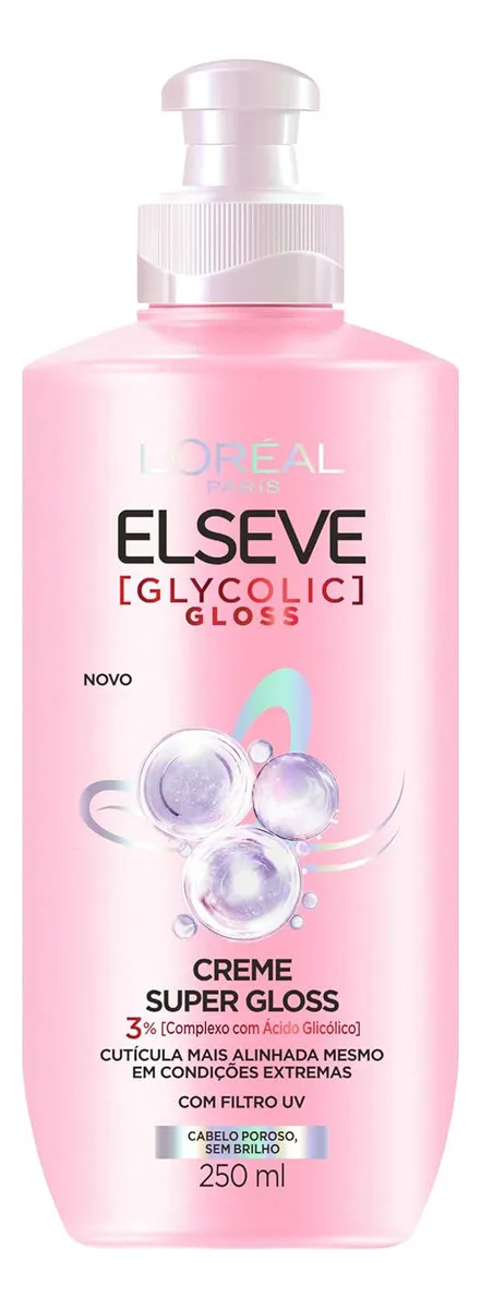 Creme de Pentear Super Gloss Brilho Intenso Glycolic Gloss Elseve 250ml